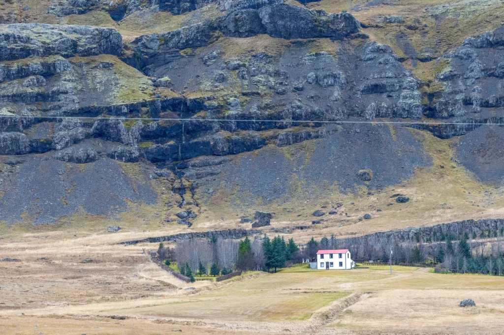 Oare cum s-ar simți vântul din Islanda prin protecția copacilor? Cum ar fi dacă pe marginea șoselei ar veghea câteva rânduri de mesteceni, cea mai întâlnită specie la ei? Nu sunt specialist, de asta doar pun întrebări, dar nu vin cu răspunsuri. Oare de asta casele au copaci în jurul lor, ca să le protejeze de vânt? Sau poate vântul e prea puternic, încât îi dărâmă imediat? Și totuși, cei din jurul caselor par să reziste.