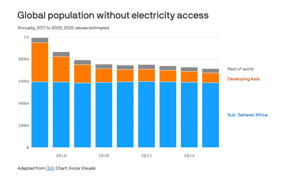 Conform datelor statistice ale IEA, mai multe regiuni din Africa sud-sahariană reprezintă aproximativ 80% din totalul persoanelor care nu au acces la energie electrică. Această concentrare geografică a deficitului energetic transformă continentul african în epicentrul crizei globale de electrificare.