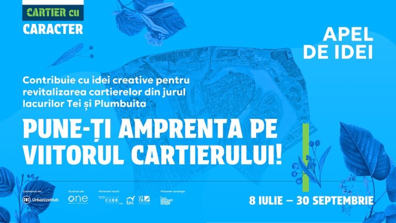 UrbanizeHub anunță lansarea Apelului de Idei „Cartier cu Caracter” dedicat cartierelor din jurul lacurilor Plumbuita și Tei din București. Până pe 30 3eptembrie, tineri din toate domeniile pot participa cu idei creative de revitalizare a acestei zone.