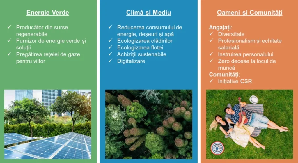 Strategia ENGIE 2030 se bazează pe trei piloni: Energie Verde, Climă și Mediu, Oameni și Comunități.