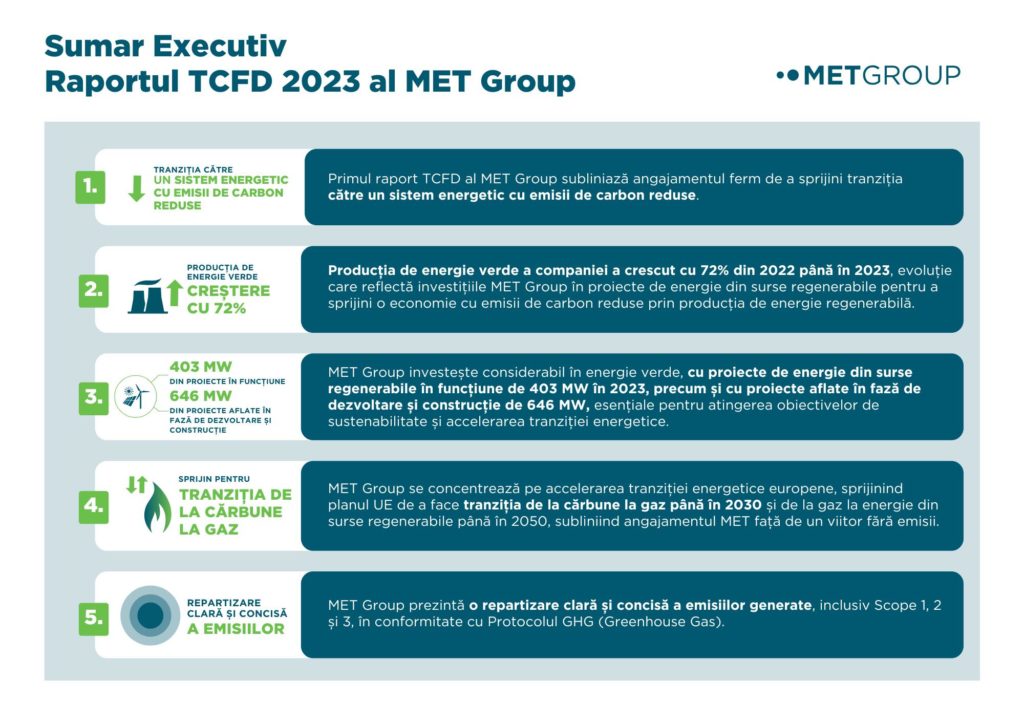 MET Group, compania energetică europeană cu sediul în Elveția, marchează un moment semnificativ în evoluția sa prin publicarea primului Raport de Sustenabilitate bazat pe standardele TCFD (Task Force on Climate-related Financial Disclosures) pentru anul 2023.