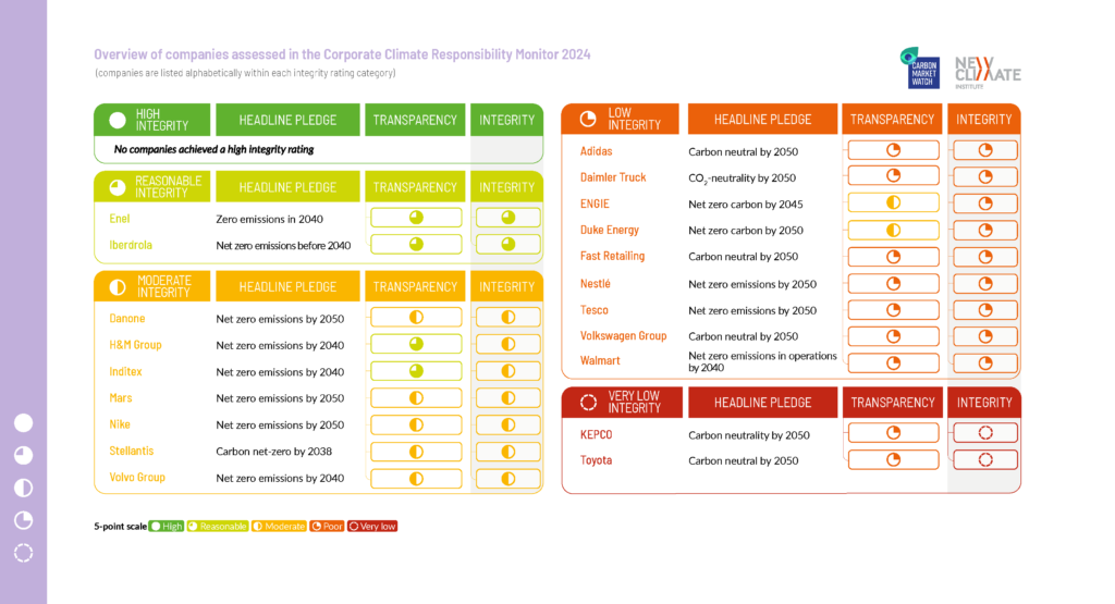 Cu toate că 19 companii și-au îmbunătățit obiectivele în ultimii doi ani, cele ale multor firme au fost descrise ca fiind ambigue, cu obiective legate doar de o parte a activității lor sau bazându-se pe compenssarea carbonului în loc să reducă emisiile, ceea ce a condus la obiective efective de 5%-20%, potrivit raportului.