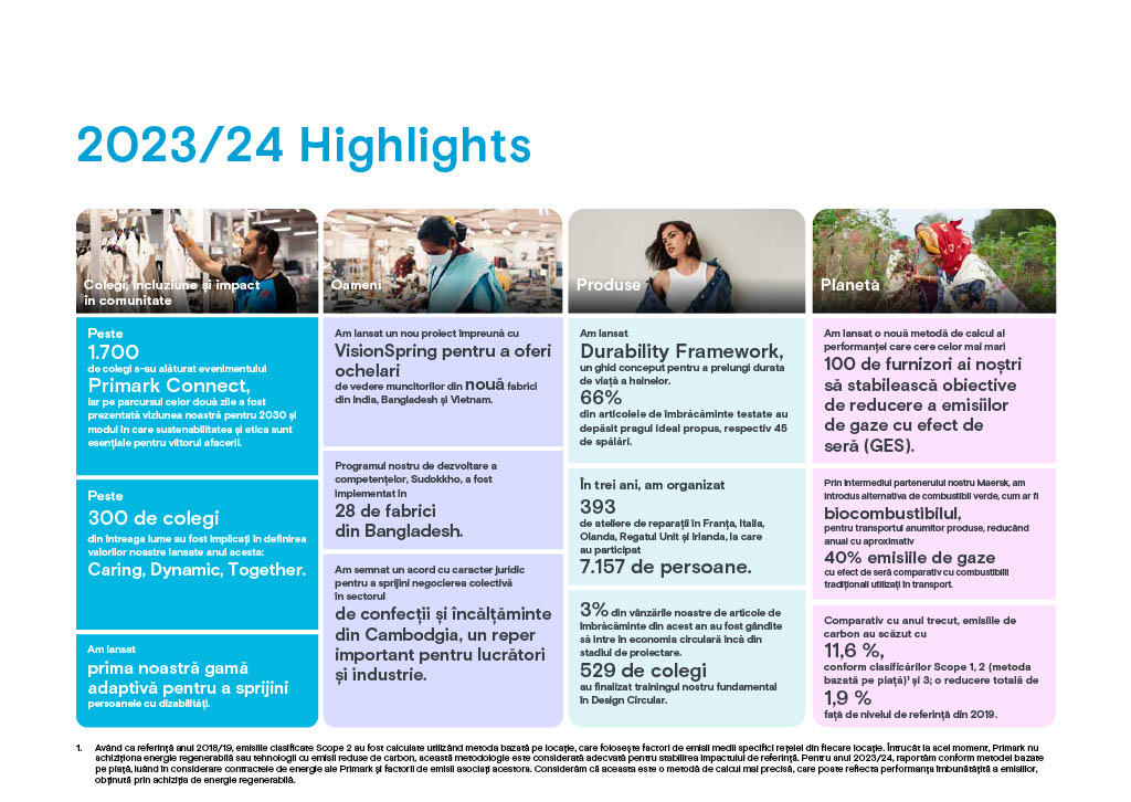 Pentru mai multe informații, citiți raportul de sustenabilitate și etică 2023/2024 – Raport Primark