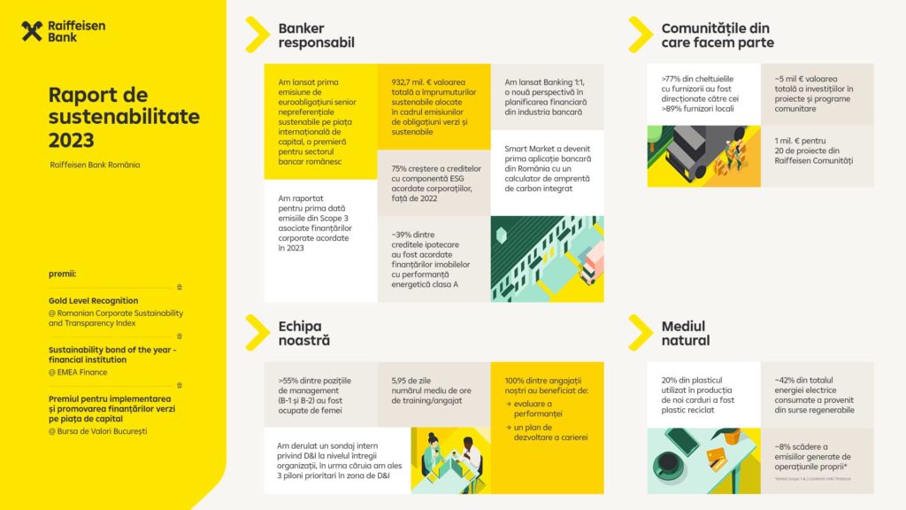 Raportul de Sustenabilitate al Raiffeisen Bank România pentru 2023 poate fi consultat integral aici.