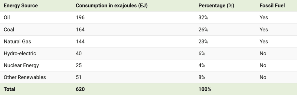 Consumul global de energie primară a atins un nou record de 620 exajouli (EJ) pentru al doilea an consecutiv în 2023, în creștere de la 607 exajouli în 2022.
