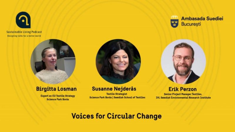 Perspectiva suedeză a fost completată de experți cu experiență directă în implementarea politicilor circulare. Dr. Erik Perzon, cercetător la IVL Swedish Environmental Research Institute, a analizat performanțele tehnologiilor moderne de reciclare. Birgitta Losman, Science Park Borås, a vorbit despre legislația europeană privind responsabilitatea extinsă a producătorilor și importanța trasabilității. Susanne Nejderås, Swedish School of Textiles & Science Park Borås, a prezentat exemple de proiecte care transformă deșeurile textile în produse noi prin inovare și colaborare industrială.